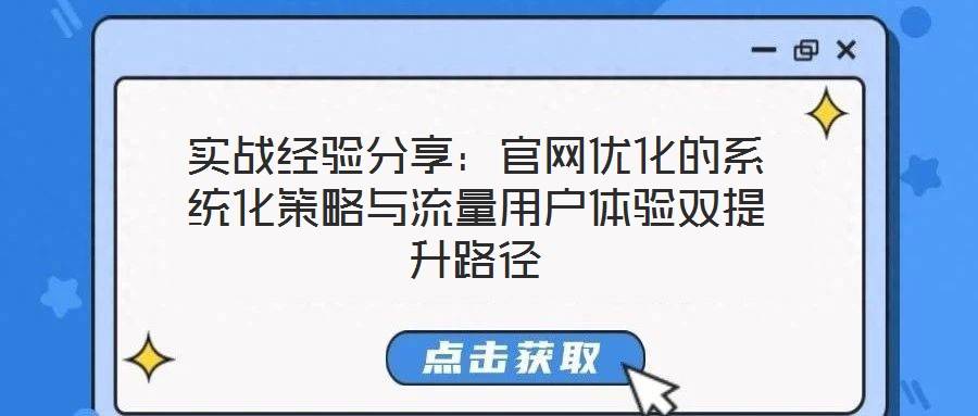 实战经验分享:官网优化的系统化策略与流量用户体验双提升路径